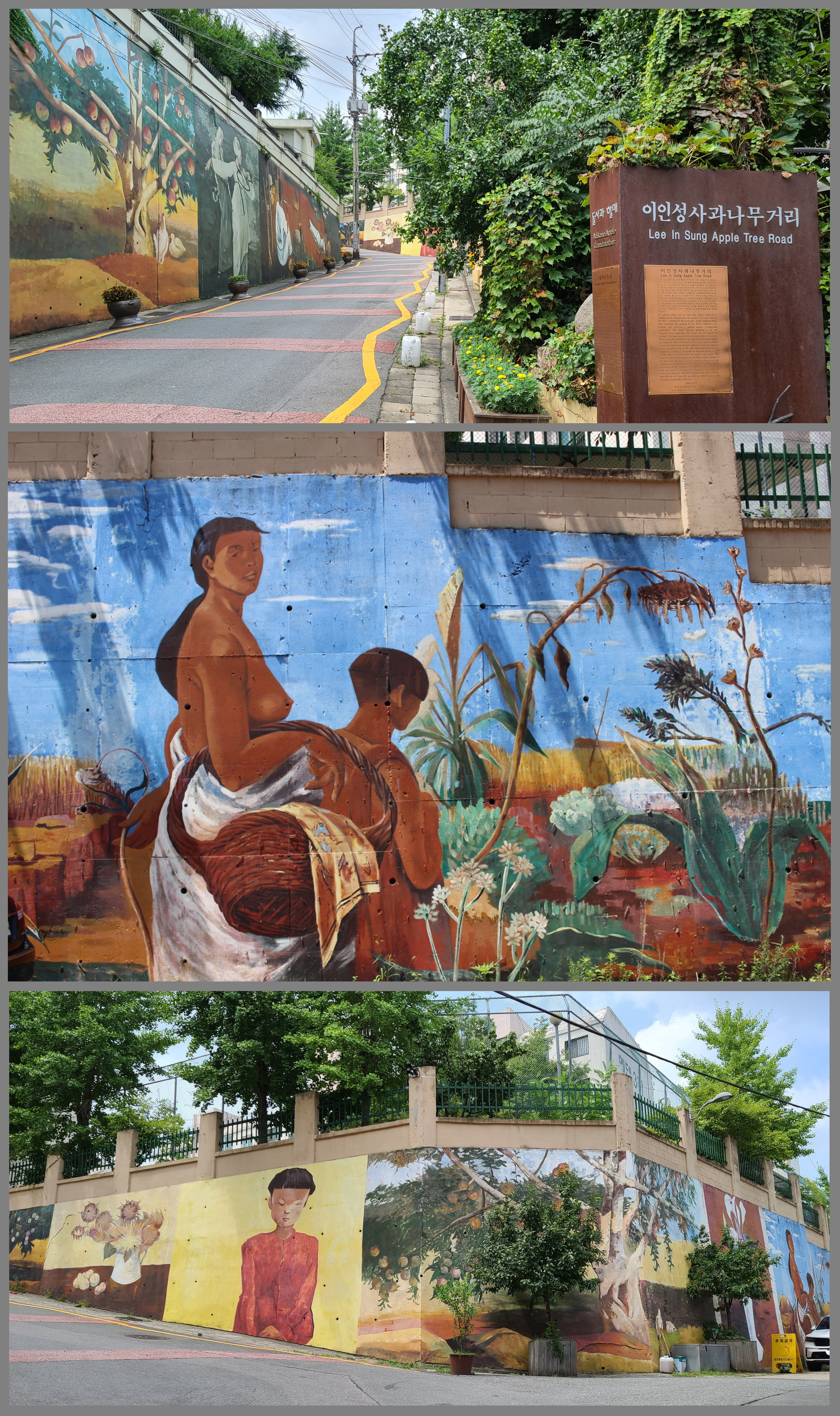 70여년이 지난 오늘날, 대구 산격동에는 아파트 담장에 이인성의 벽화가 그려진, '사과나무 거리'가 있답니다.