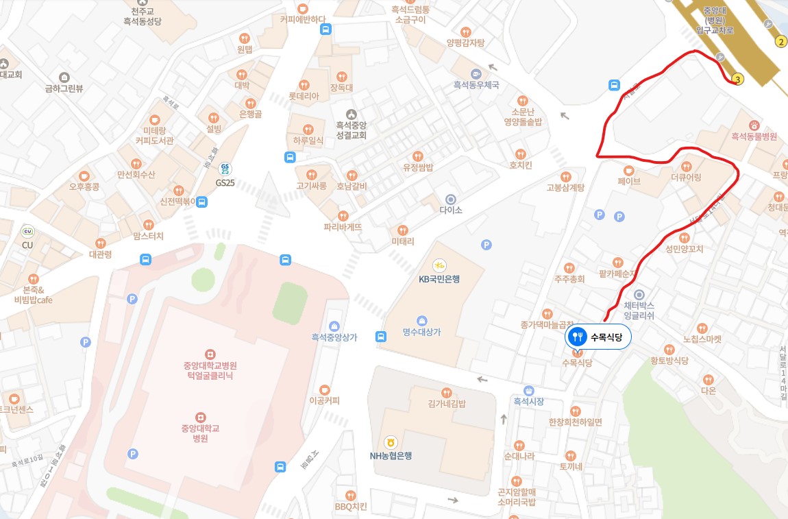 지하철 9호선 흑석역 3번출구 지도상 붉은색 표시 따라 내려오다보면
