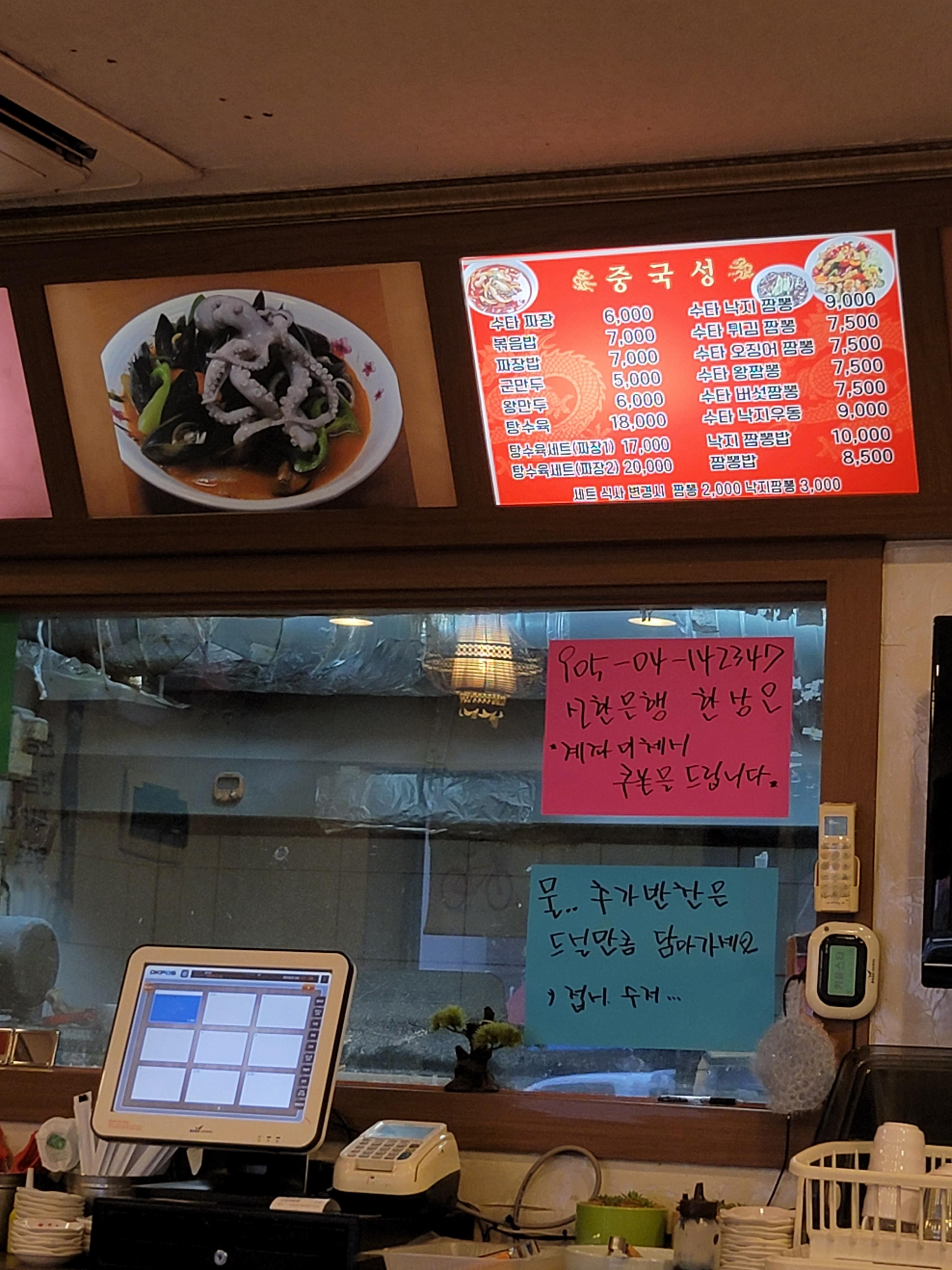 짜장의 경우 수타면 쫄깃해서 좋지만 다른 중식당의 짜장면에 비해 별로다. 약간 불고 차가운 면에 미지근한 짜장소스? 양파는 별로안들어간 짜장소스좋아한다면 괜챃을 수도 ~