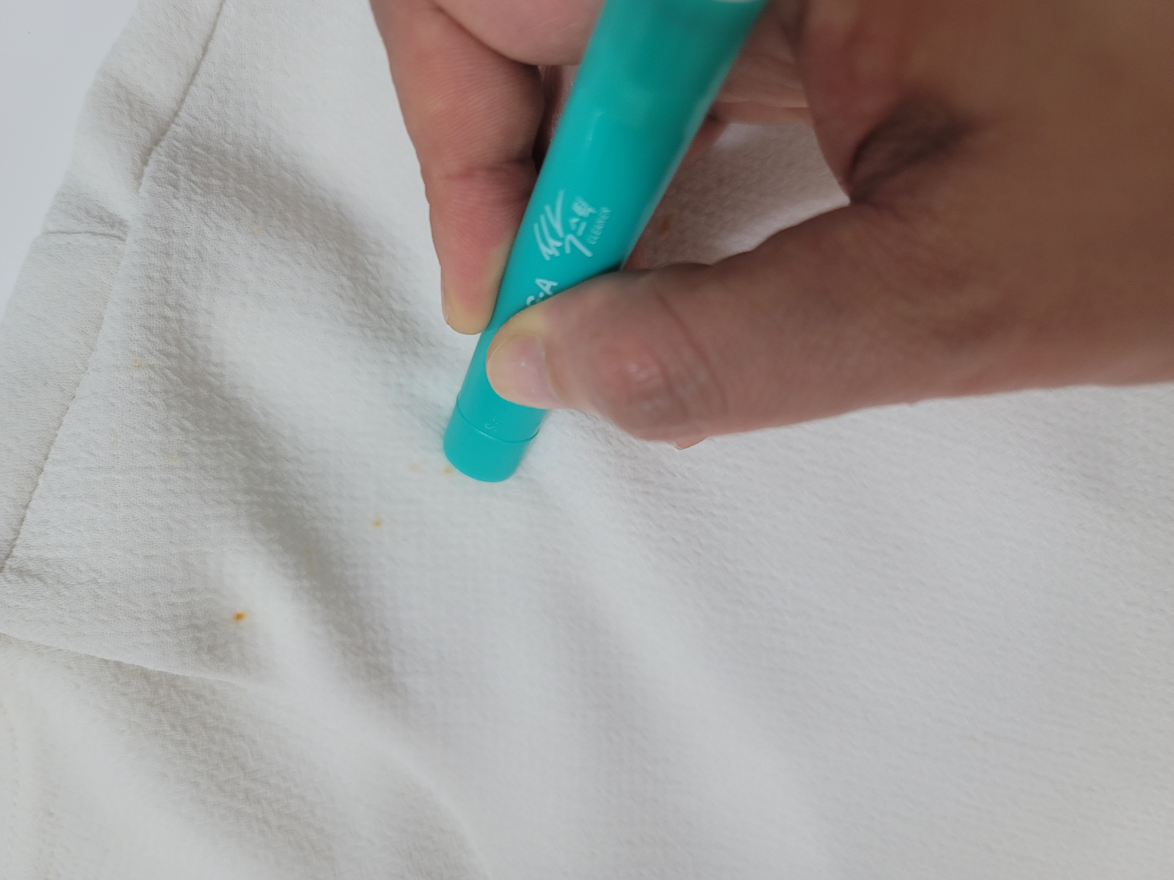 2. 싹스틱으로 얼룩 부위에 직접 문지르기