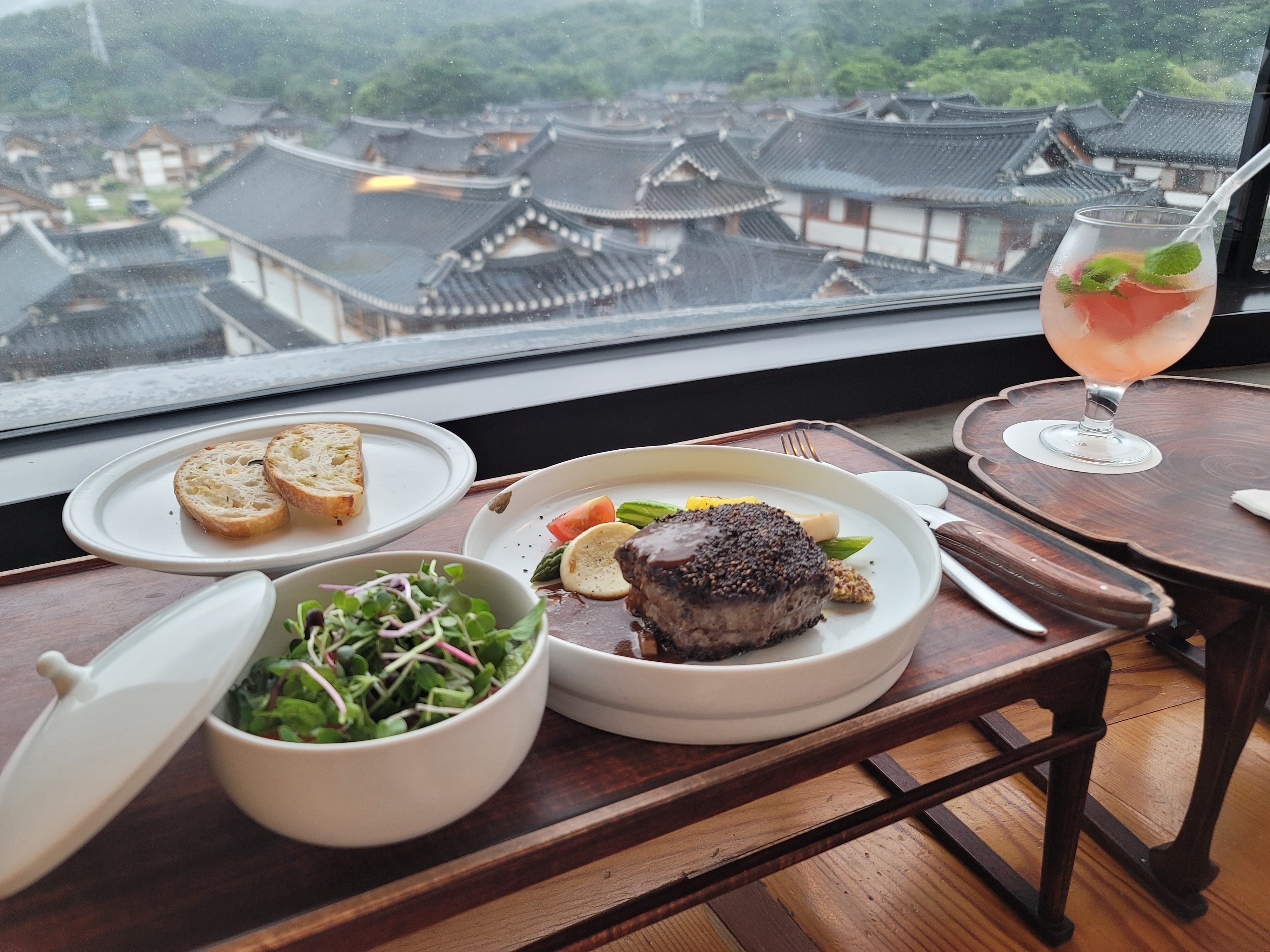좌식 후후후후후후~. 식탁이라고 하기에 낮고 작지만,, 뷰 맛집이라 정신 놓고 구경하다보면 불편함 그다지 크지 않게 느껴진다.