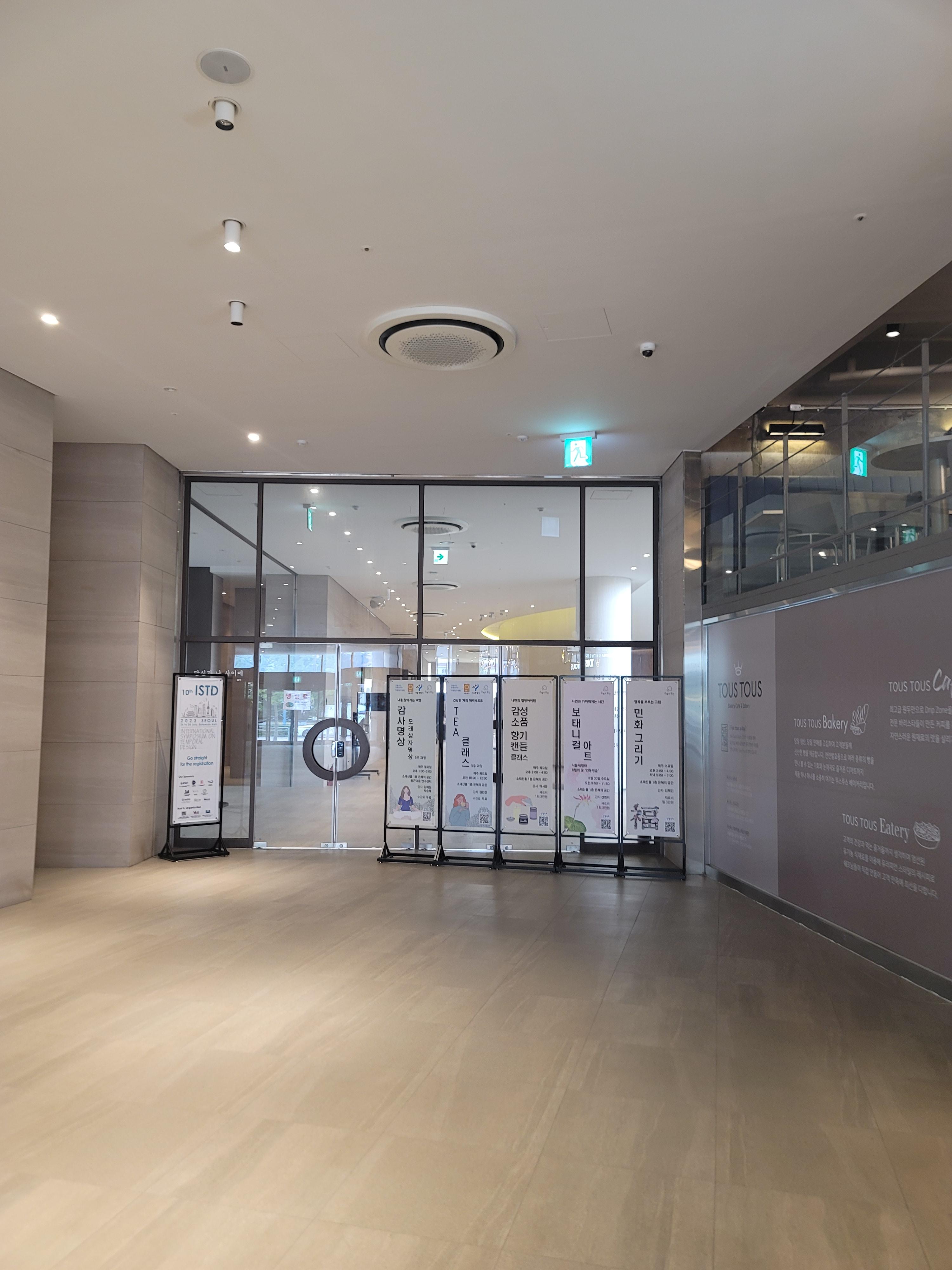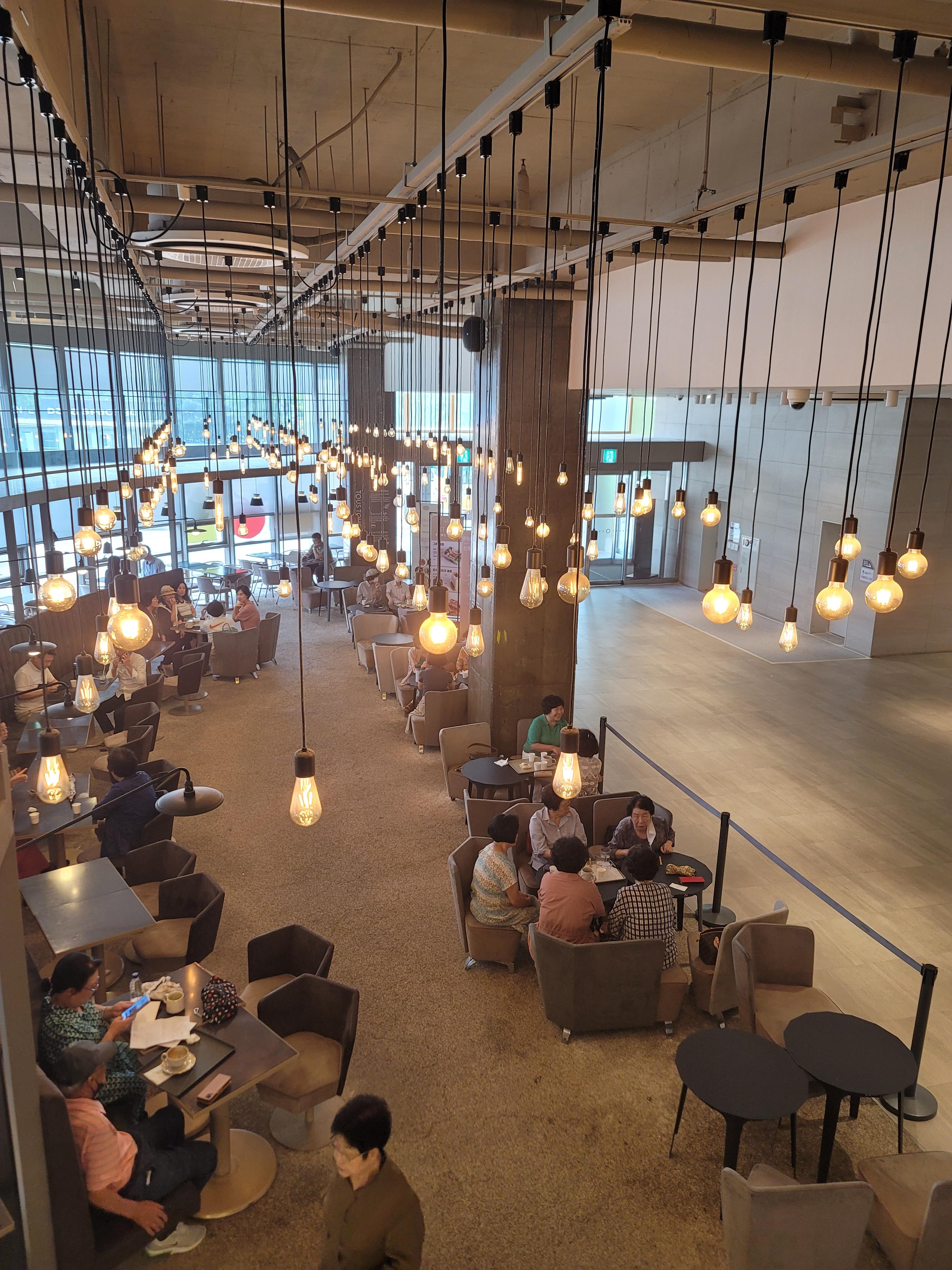 1층 우측 카운트 가는 방향, 계단 카페 2층, 좌측 원불교 메인 로비 향하는 길